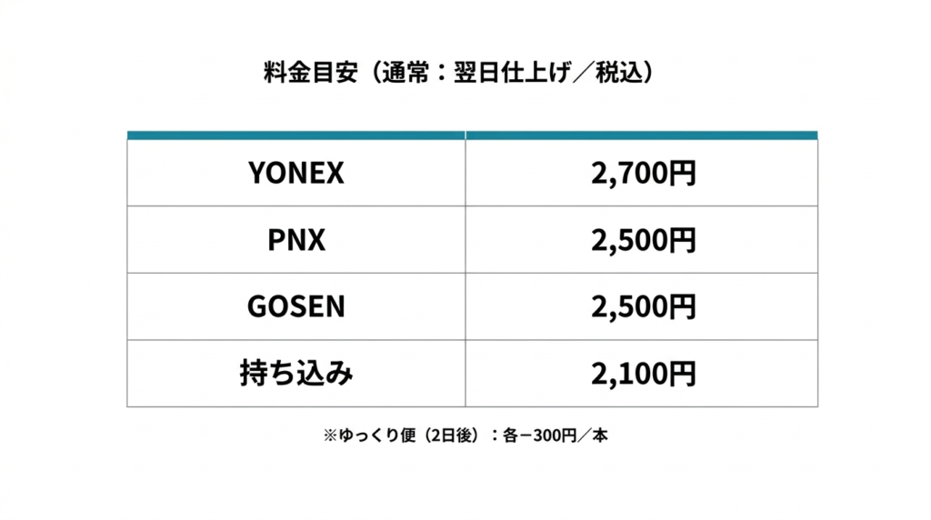 料金目安(ガット代+工賃込/通常:翌日仕上げ/税込)